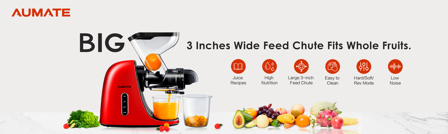 - Upgraded Auger & Quiet DC Motor: AUMATE Fretta wide chute juicer operates with less noise, so you won’t disturb your family while you’re making fresh juice. The upgraded high quality auger can help you squeeze juice efficiently.