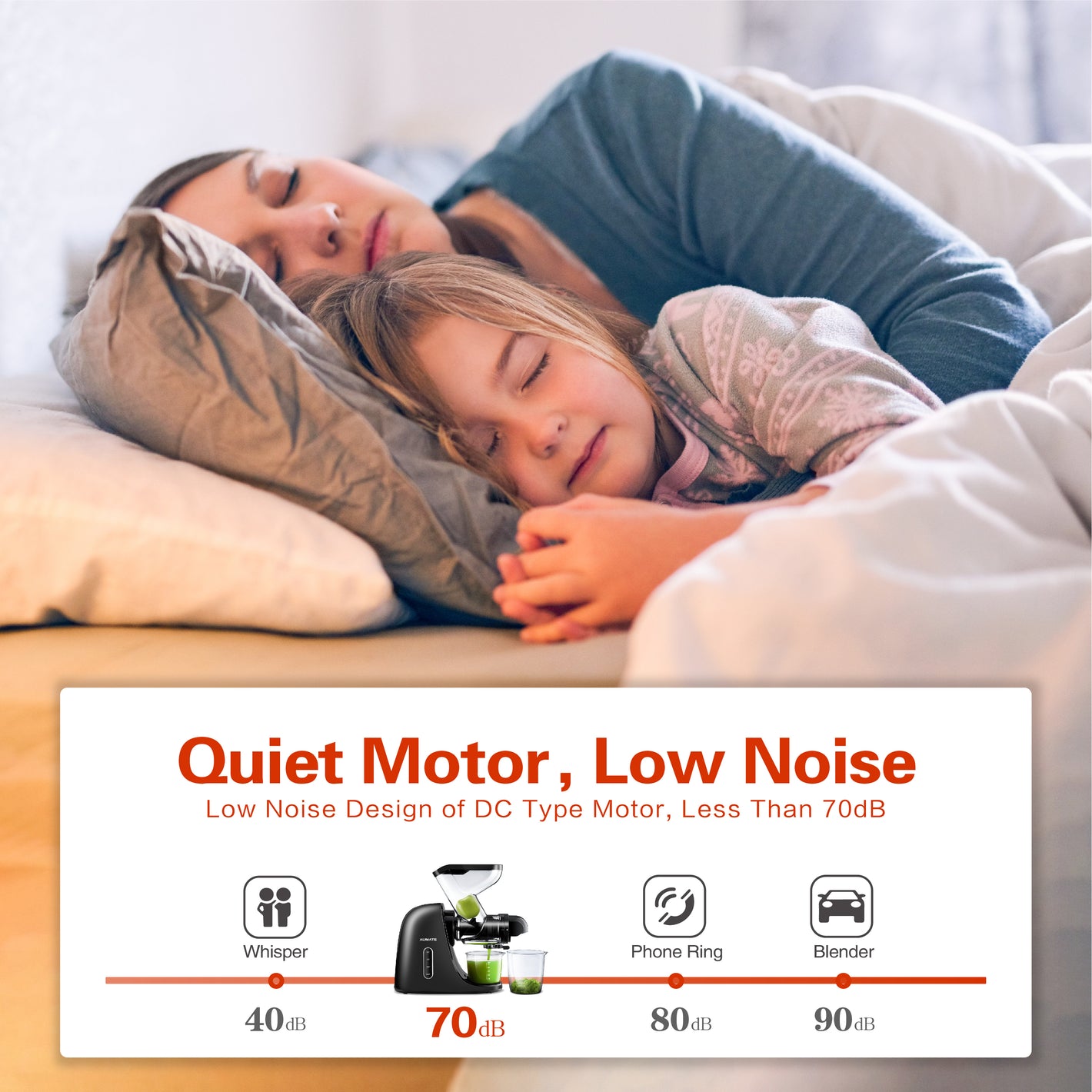 With this powerful 200W DC motor, our juicer could operate at a low noise level of no more than 70 dB, which means it's quieter than your phone ringing.
